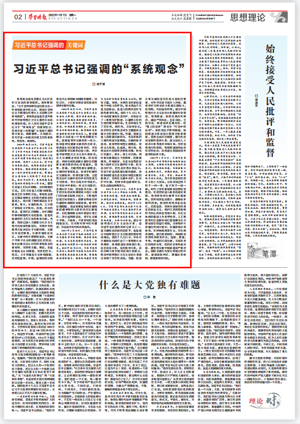 系統觀念是馬克思主義認識論和方法論的重要范疇。恩格斯指出,“關于自然界所有過程都處在一種系統聯系中的認識,推動科學到處從個別部分和整體上去證明這種系統聯系”。系統觀念也是習近平新時代中國特色社會主義思想方法論的重要內容。深入學習習近平總書記關于“系統觀念”的重要論述,有助于進一步增強廣大黨員干部的整體觀念、戰略思維、大局意識,有利于進一步提高各項工作的系統性、預見性、協同性。
