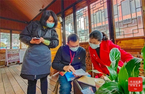 云南省陸良縣紀委監委緊盯躲進內部食堂、農家樂等隱蔽場所公款吃喝隱形變異“四風”問題,成立督查組開展明察暗訪,深挖細查風腐一體問題,堅決防止“四風”問題反彈回潮。圖為督查組在城郊某農家樂查看餐飲記錄,摸排問題線索。(云南省陸良縣紀委監委 王勇 攝)