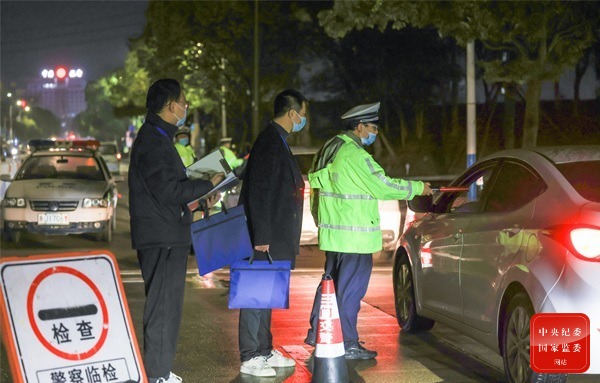 浙江省三門縣紀委監委從嚴從速查處黨員干部和公職人員酒駕醉駕違紀違法行為,深挖細查隱藏在酒駕醉駕背后的違規吃請和風腐一體問題,進一步壓緊壓實各級黨組織全面從嚴治黨主體責任,依規依紀依法進行追責問責,切實鞏固作風建設成果。圖為該縣紀檢監察干部在海游街道入城口與交警聯動協作,開展酒駕醉駕專項檢查。(浙江省三門縣紀委監委 陳昌暉 攝)