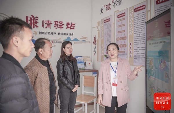 廣西壯族自治區鹿寨縣紀委監委將糾治“四風”問題探頭架設到群眾“家門口”,通過搭建廉情驛站微權力監督平臺,著力發現和整治群眾身邊的腐敗和作風問題。圖為該縣鹿寨鎮紀委指導村務監督委員會成員運用監督平臺數據分析研判信訪舉報問題線索。(廣西壯族自治區鹿寨縣紀委監委 覃智鋒 攝)