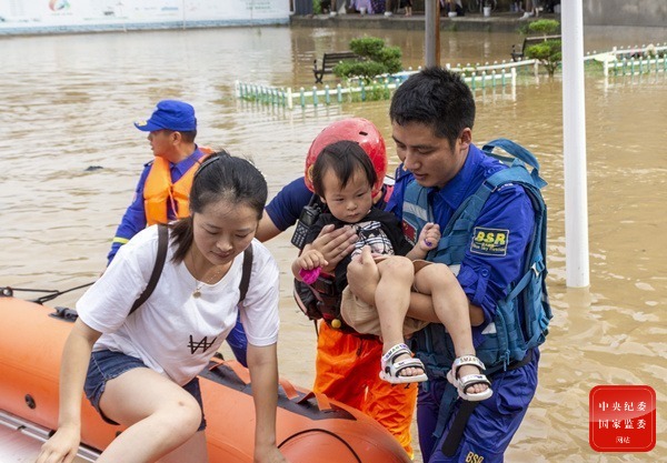 洪水無情,人間有愛,面對連續降雨引發的洪澇災害,安徽省廣德市的志愿者們一呼百應,迅速集結。他們穿上戰衣,逆流而上,全力確保人民群眾生命財產安全,在災害面前傳遞溫暖。圖為該市“藍天救援隊”的志愿者在洪水中轉移受困群眾。(安徽省廣德市紀委監委供 劉賀平 攝)