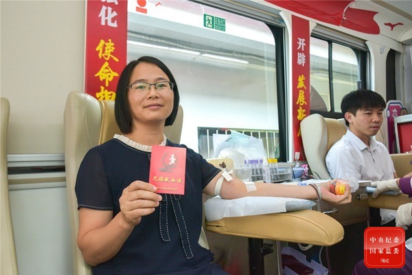 廣西壯族自治區梧州市紀委監委各黨支部成立志愿服務隊,積極組織紀檢監察干部志愿者投身疫情防控、文明交通勸導、無償獻血等志愿服務、社會公益活動,用實際行動踐行紀檢監察人的社會擔當。圖為該市紀委監委志愿者在參與無償獻血活動。(廣西壯族自治區梧州市紀委監委供 林志清 攝)