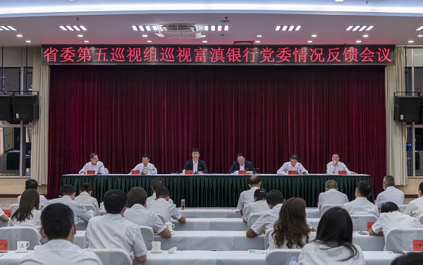 根據省委統一部署,2022年7月12日,省委第五巡視組向富滇銀行黨委反饋了巡視情況。會前,省委巡視工作領導小組成員王正英傳達了省委書記王寧在主持省委常委會會議聽取十一屆省委第一輪巡視情況匯報時的講話要求,省委巡視組組長趙基向富滇銀行黨委書記代軍反饋了巡視情況。會上,參會人員集中學習了習近平總書記關于巡視整改的重要論述及黨規黨紀有關規定要求,趙基向富滇銀行黨委領導班子反饋了巡視意見,省政府黨組成員王浩對巡視整改提出明確要求,代軍主持反饋會議并作表態講話。