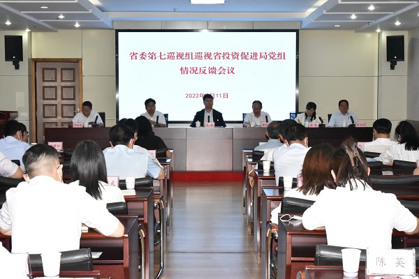 按照省委統一部署,2022年7月11日,省委第七巡視組向省投資促進局黨組反饋了巡視情況。會前,省委巡視辦副主任楊永忠傳達了省委書記王寧在主持省委常委會會議聽取十一屆省委第一輪巡視情況匯報時的講話要求,省委巡視組組長唐先勝向省投資促進局黨組書記段穎反饋了巡視情況。會上,參會人員集中學習了習近平總書記關于巡視整改的重要論述及黨規黨紀有關規定要求,唐先勝向省投資促進局黨組領導班子反饋了巡視意見,省政府黨組成員王浩對巡視整改提出明確要求,段穎主持反饋會議并作表態講話。