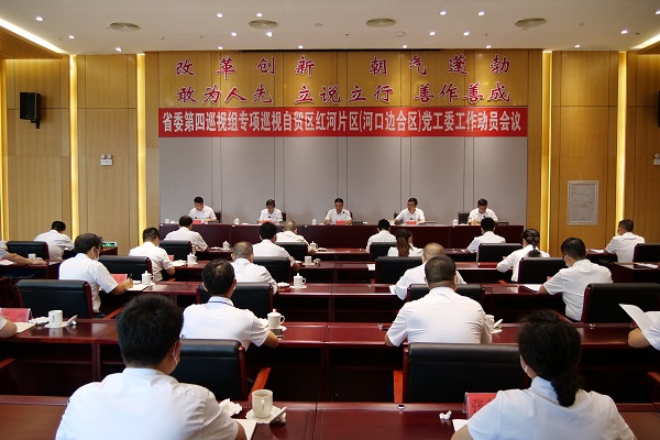 按照省委統一部署,7月29日,省委第四巡視組專項巡視自貿區紅河片區黨工委工作動員會召開。會前,巡視組組長徐衛民主持召開與自貿區紅河片區黨工委書記吳世雄的見面溝通會,通報了巡視任務,提出了工作要求;巡視組副組長普翠瓊傳達了省委書記王寧聽取巡視工作有關情況匯報時的講話要求。會上,徐衛民組長作了動員講話;普翠瓊副組長通報了干擾、對抗巡視的一些典型問題;吳世雄書記主持會議并表態講話。