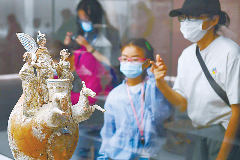 近日,在中國國家博物館內,家長帶小朋友觀看“意大利之源——古羅馬文明展”。 田雨昊 攝(圖片來源:視覺中國)