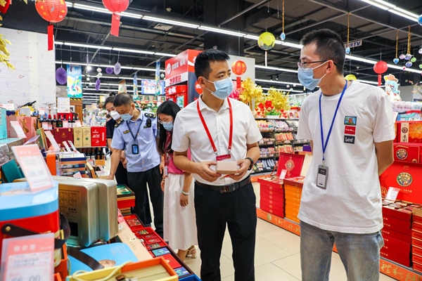 浙江省浦江縣紀(jì)委監(jiān)委緊盯“天價(jià)”月餅背后“四風(fēng)”問題,開展“清風(fēng)護(hù)航”專項(xiàng)行動(dòng),通過明察暗訪、大數(shù)據(jù)監(jiān)督等方式,嚴(yán)防“四風(fēng)”反彈回潮。圖為該縣督查組人員在某土特產(chǎn)店檢查了解有關(guān)情況。(浙江省浦江縣紀(jì)委監(jiān)委供圖 洪小嵐 攝)