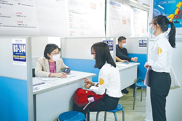 圖為廣東省東莞市“莞邑啟航 逐夢灣區(qū)”高校畢業(yè)生就業(yè)專場招聘活動現(xiàn)場。(圖片來源:視覺中國)