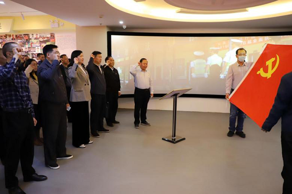 在掛滿榮譽獎章和寫著“不忘初心、牢記使命”的展廳里,30余名黨員重溫了入黨誓詞。鏗鏘有力的宣誓聲,震撼了每一名黨員的心靈,進一步強化了大家的黨性意識。