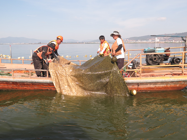 云南省紀(jì)委監(jiān)委嚴(yán)肅查處“玉溪杞麓湖污染治理治標(biāo)不治本、水質(zhì)長(zhǎng)期得不到改善”典型案例,同步推進(jìn)發(fā)現(xiàn)問題、分析問題、解決問題。圖為通海縣紀(jì)委監(jiān)委督促相關(guān)部門拆除湖中柔性圍隔等干擾水質(zhì)監(jiān)測(cè)的設(shè)施。柏元?jiǎng)?攝