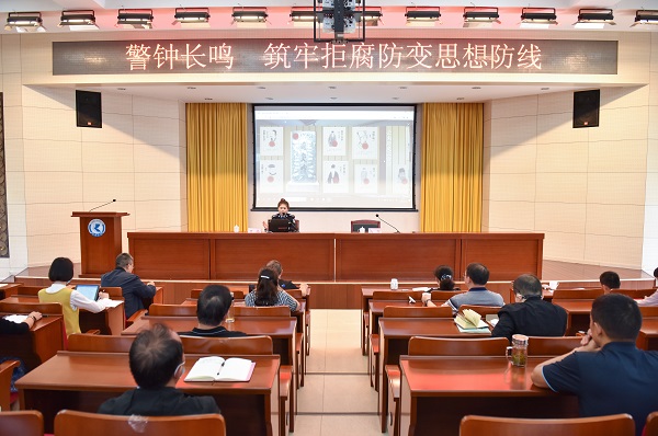 參加活動(dòng)的全體黨員干部和師生仔細(xì)聆聽講解并觀看了警示教育片。