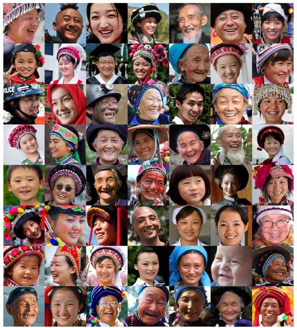 這是由大理州各族干部群眾幸福笑臉組成的組照,寓意在黨的領導下,大理干部群眾滿懷信心,奔向未來。