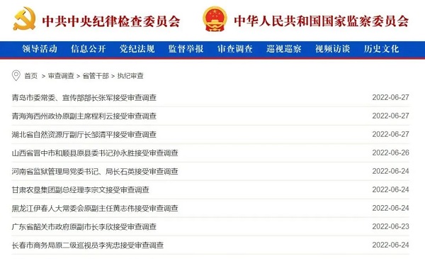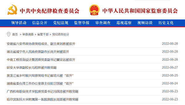 四、4名中管干部被查,2名中管干部被處分,多名廳局級黨員干部被查