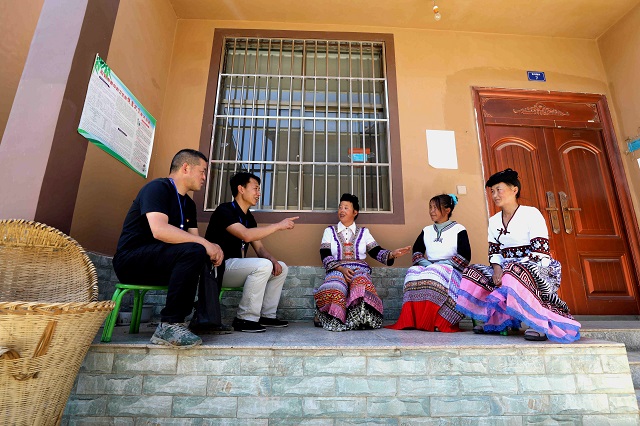 保山市龍陵縣紀委監(jiān)委推動監(jiān)督力量下沉,著力發(fā)現(xiàn)鄉(xiāng)村振興重點項目和惠農(nóng)政策落實中的腐敗和作風(fēng)問題。圖為近日,該縣紀檢監(jiān)察干部在勐糯鎮(zhèn)大寨村向群眾了解有關(guān)情況。(保山市龍陵縣紀委監(jiān)委 王龍芹 攝)