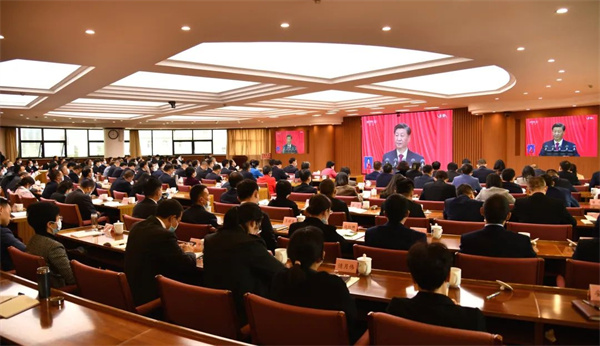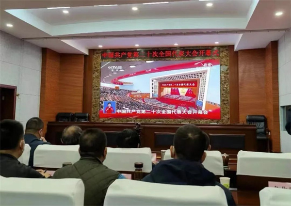 文山壯族苗族自治州紀委監委組織機關全體黨員干部觀看黨的二十大開幕會。