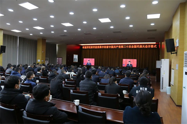 昆明市紀委監委收聽收看黨的二十大開幕會現場直播。