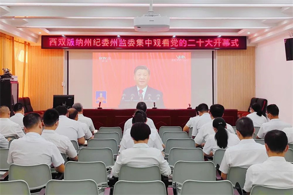 西雙版納傣族自治州紀委監委組織紀檢監察干部實時收聽收看黨的二十大開幕會盛況。