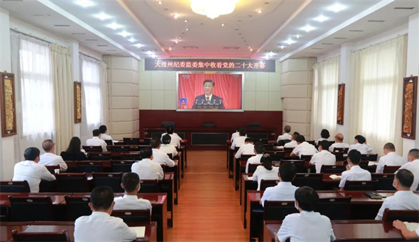大理白族自治州紀委監委組織紀檢監察干部收看黨的二十大開幕會。