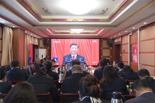 迪慶藏族自治州紀檢監察干部收聽收看黨的二十大開幕會實況。
