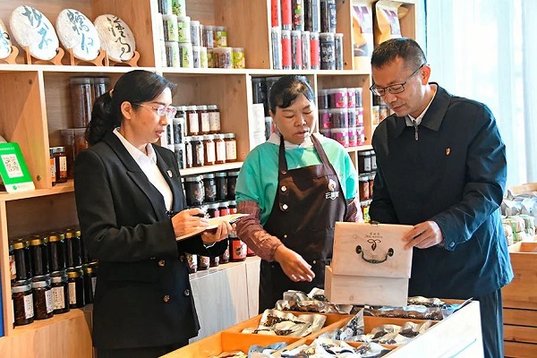 云南省雙江縣紀(jì)委監(jiān)委工作人員深入超市、土特產(chǎn)專賣店等場(chǎng)所查看賬單,對(duì)公款購買高檔茶、酒等情況進(jìn)行監(jiān)督檢查。江宏峰 攝