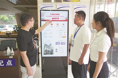 云南省安寧市紀委監委以大數據賦能監督管理,積極探索開發村(社區)“三資智慧監管平臺”,推動惠民政策落細落實。圖為日前,該市紀檢監察干部在了解相關情況。 錢敏 攝