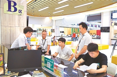 云南省景洪市紀委監委聚焦優化營商環境中的難點堵點,對涉企窗口單位開展蹲點式調研,壓緊壓實責任,推動惠企政策落地落實。圖為近日,該市紀檢監察干部走訪市政務中心窗口服務部門,了解相關情況。肖小鳳攝