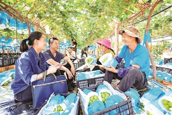 云南省陸良縣紀委監委持續整治群眾身邊的不正之風和腐敗問題,組織紀檢監察干部深入一線,面對面傾聽群眾訴求,收集問題線索,推動解決群眾急難愁盼問題。圖為近日,該縣芳華鎮紀委干部在雍家村向葡萄種植戶了解有關情況。(王勇 攝)