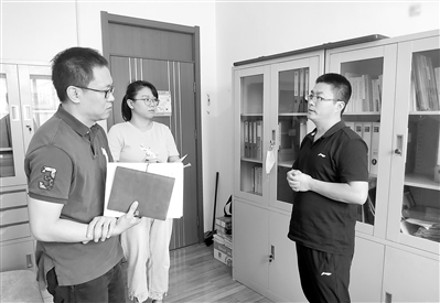 7月5日,天津市紀委監委駐天津音樂學院紀檢監察組干部與學院黨委巡察辦負責同志溝通巡察整改監督情況,共同研判學院政治生態狀況。馬卿 攝