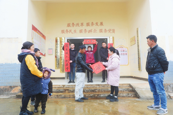 “清風吹入村委會、廉潔走進群眾家”“多辦村民急難事、不貪群眾一分錢”。文山市紀委監委在春節來臨之際,根據全市152個村委會(社區)黨風廉政建設不同情況送上相對應的廉潔春聯,祝愿村委會(社區)守住廉潔的前沿陣地和第一道防線。圖為該市紀檢監察干部在壩心鄉壩心村送春“廉”的場景。(王銘堅 攝)