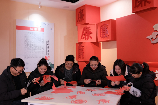西疇縣紀委監委充分發揮廉潔文化的教育引導作用,在春節來臨之際,組織開展剪“廉畫”、傳“廉意”活動,將廉潔文化與剪紙藝術有機結合,寓教于樂,用傳統的藝術形式為新年增添“廉味”,營造風清氣正的節日氛圍。圖為該縣紀檢監察干部正在開展剪“廉畫”活動。(李忠馨 攝)