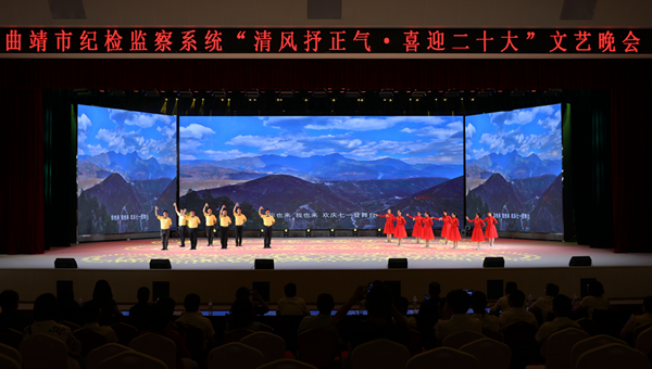 舉行全市紀檢監察系統“清風抒正氣 喜迎二十大”文藝晚會,集中展現曲靖深厚的廉潔文化底蘊,以及全市各地清廉建設和廉潔文化建設成效,展現新時代紀檢監察干部對黨忠誠、無私無畏的政治本色和朝氣蓬勃、昂揚向上的精神風貌。