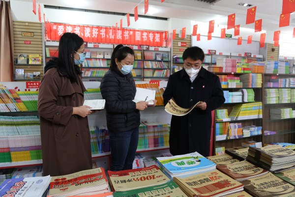 石屏縣紀(jì)委監(jiān)委監(jiān)督檢查組到校外書(shū)店開(kāi)展監(jiān)督檢查,重點(diǎn)了解教師是否要求學(xué)生亂定教輔資料等情況,嚴(yán)防開(kāi)學(xué)季藏“貓膩”。(何佳 攝)