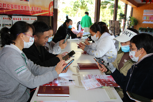 蒙自市紀委監(jiān)委聚焦群眾就業(yè)重點難點,督促有關(guān)職能部門履職施策,以強有力的監(jiān)督保障“就業(yè)這個最大的民生”落實落地。圖為該市紀檢監(jiān)察干部前往“建設(shè)者之家”開展“監(jiān)督一點通”平臺宣傳推廣,拓寬群眾監(jiān)督渠道。(徐雪 攝)
