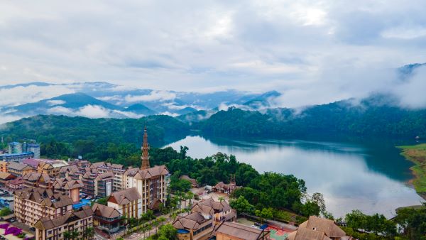 清晨,隱匿在群山之間的西盟城,云霧繚繞間透著光亮,空氣里滿是春的氣息。(虎遵會 攝)