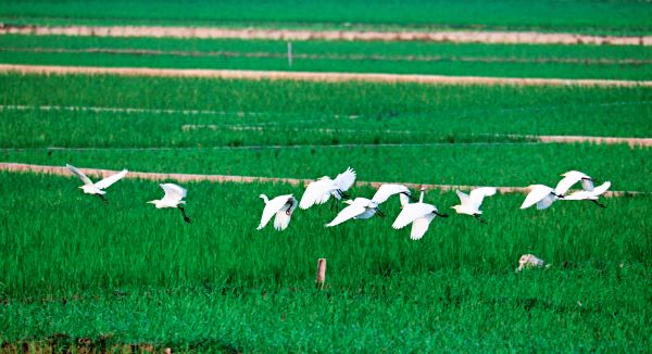 陽春三月,孟連縣萬畝早稻陸續(xù)返青,成群的白鷺出現(xiàn)在田間,它們時而低頭覓食,時而展翅與同伴嬉戲,呈現(xiàn)一派祥和美麗的田園風(fēng)光。(陳永剛 攝)