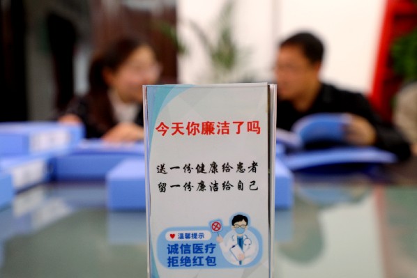 文山市紀委監(jiān)委大力推進廉潔文化建設(shè)向機關(guān)、企業(yè)、學(xué)校、醫(yī)院、村居延伸,讓廉潔文化凈化各領(lǐng)域政治生態(tài)。圖為馬塘衛(wèi)生院制作的醫(yī)生廉潔牌,時刻提醒醫(yī)務(wù)人員廉潔自律、自尊自愛。(王銘堅 攝)