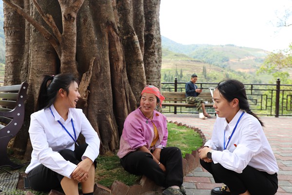 綠春縣紀委監委著重加強年輕干部能力素質培養,堅持嚴在日常、管在經常,在實戰中提升紀檢監察干部綜合素質和能力,把汗水灑在正風肅紀一線。圖為該縣年輕紀檢監察干部與群眾促膝而談。(楊元潔 攝)