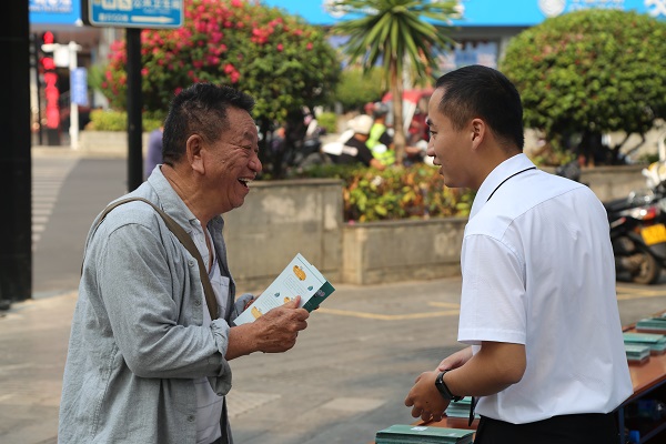 近年來,景洪市紀委監委為推動全面從嚴治黨向基層一線延伸,促進信息化監督融入基層治理,確保群眾訴求“件件有回應、事事有著落”,在全市推廣基層小微權力“監督一點通”平臺。圖為市紀委監委青年紀檢監察干部手把手教群眾操作流程,面對面答疑解惑。(張烜燚 攝)