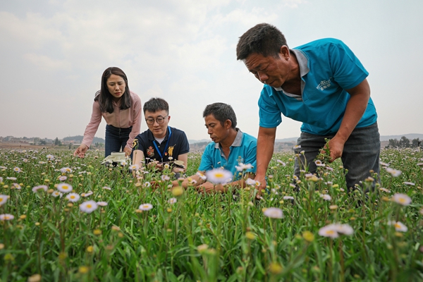 陸良縣紀委監委年輕紀檢監察干部在召夸鎮大栗樹村燈盞花種植基地走訪調研,向種植戶詳細了解惠農政策落實等情況,以精準監督助推解決群眾“急難愁盼”問題。(王勇 攝)