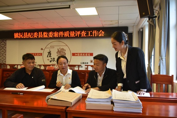 鎮(zhèn)沅縣紀委監(jiān)委定期組織案件質量集中評查,從事實清楚、證據確鑿、定性準確、處理恰當、程序合規(guī)、手續(xù)完備、管理規(guī)范、執(zhí)行到位等方面進行全面“體檢”,對評查中遇到的疑點、難點,開展專題討論。(李穎 攝)