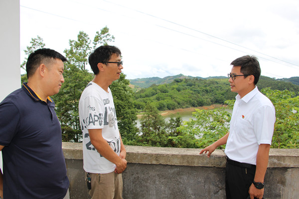 紅河縣紀委監委采取“四不兩直”方式,深入相關職能部門和防洪排澇一線,緊盯防汛紀律、隱患排查、物資保障等重點環節開展監督檢查,筑牢防汛“安全堤壩”。圖為該縣紀檢監察干部在樂育鎮紅星水庫了解防汛相關情況。(師燕芳 攝)