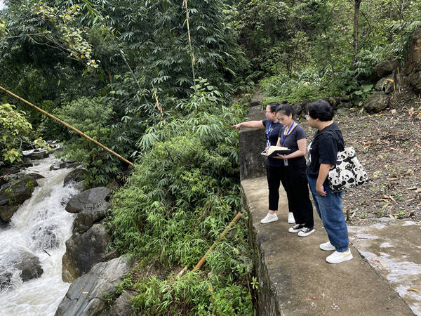 蒙自市紀委監委聚焦防汛值守、風險排查等關鍵環節,通過深入水庫、地質災害隱患點等重點場所開展監督檢查,織密防汛備汛“安全網”。圖為該市紀檢監察干部在水庫了解防汛備汛工作落實情況。(徐雪 攝)