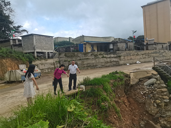 建水縣紀委監委緊盯防汛備汛、搶險救災全過程各環節深入一線跟進監督,壓緊壓實工作責任。圖為該縣紀檢監察干部在臨安鎮新寨村開展防汛救災工作監督檢查。(建季 攝)