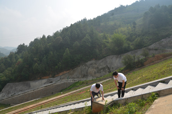 元陽縣紀委監委開展“下沉式”監督,緊盯防汛責任不落實、排查整治不徹底等問題及背后的工作作風問題,加強對轄區水庫、地質災害點的監督檢查。圖為該縣紀檢監察干部到丫多河水庫查看堤壩、水庫水位標識情況。(周笑延 攝)