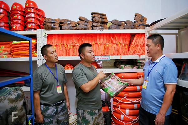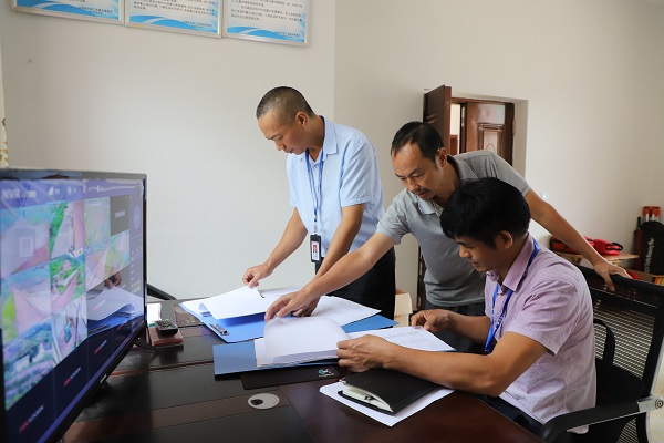 鎮(zhèn)沅縣紀委監(jiān)委充分發(fā)揮派駐紀檢監(jiān)察組“貼身”監(jiān)督作用,聯(lián)合縣水務局、縣防汛抗旱指揮部組建專項督查組,深入水庫、堤壩、河道、農(nóng)田溝渠等重點部位、重點區(qū)域防汛備汛工作進行督查。圖為督查組在轄區(qū)內(nèi)水庫管理所查看相關臺賬。(羅廷華 攝)
