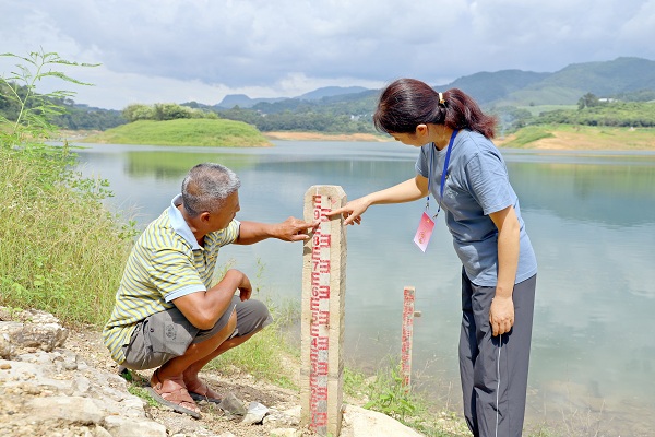 孟連縣紀委監(jiān)委深入防汛一線,實地察訪防汛措施落實、應急值班值守、巡堤查險等情況,堅決杜絕防汛責任“空懸”現(xiàn)象發(fā)生。圖為該縣紀委監(jiān)委駐縣農(nóng)業(yè)農(nóng)村和科學技術局紀檢監(jiān)察組到中勒水庫現(xiàn)場了解水位高度。(劉松琳 攝)