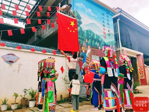 少數民族同胞們用自己的方式表達著對祖國真摯的愛,圖為云南省龍陵縣的傈僳族同胞以懸掛鮮艷的五星紅旗的方式迎接國慶,祝福祖國繁榮富強。(云南省龍陵縣紀委監委供 王龍芹 攝)