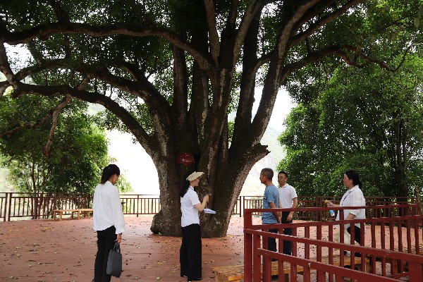 富寧縣將環(huán)境保護監(jiān)督工作納入日常監(jiān)督工作和巡察工作,深入村組一線收集問題線索,推進環(huán)境保護工作落到實處。圖為該縣紀委監(jiān)委工作人員聯(lián)合縣委巡察組工作人員在歸朝鎮(zhèn)冒塘村了解古樹保護情況。(閆文杰 攝)