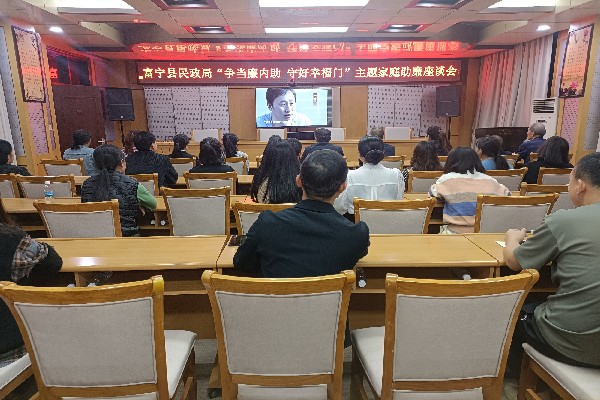 富寧縣紀委監(jiān)委制定“六個一”家庭助廉活動方案,進一步發(fā)揮家庭在助廉教育中的作用,引導(dǎo)全縣各級各單位開展家庭助廉活動,從源頭上筑起“防腐線”。圖為該縣民政局組織干部職工家屬召開家庭助廉座談會,并觀看警示教育片。(樊艷 攝)