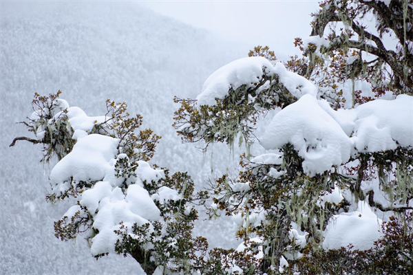 近日,德欽縣迎來了入冬以后的第二場大雪,洋洋灑灑的雪花下了一夜一天,最終將這個小山城白了頭,街道、樹梢、山頂都是白茫茫的一片,仿佛置身于冰雪世界。(斯娜卓瑪從 攝)